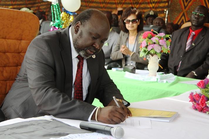 25 February 2012- In the presence of thousands of residents, Lakes State Governor Chol Tong Mayay signed the Transitional Constitution of the Republic of South Sudan (2011) and was sworn in anew under its provisions today in…