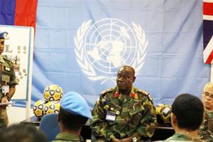 Kinshasa, 19 December 2010 - MONUSCO Western Brigade Commander, Brig Gl Martin Owusu-Ababio, distributed 70 soccer balls to team site leaders who gathered in a symbolic ceremony in Kinshasa on 19 December to promote peace and…