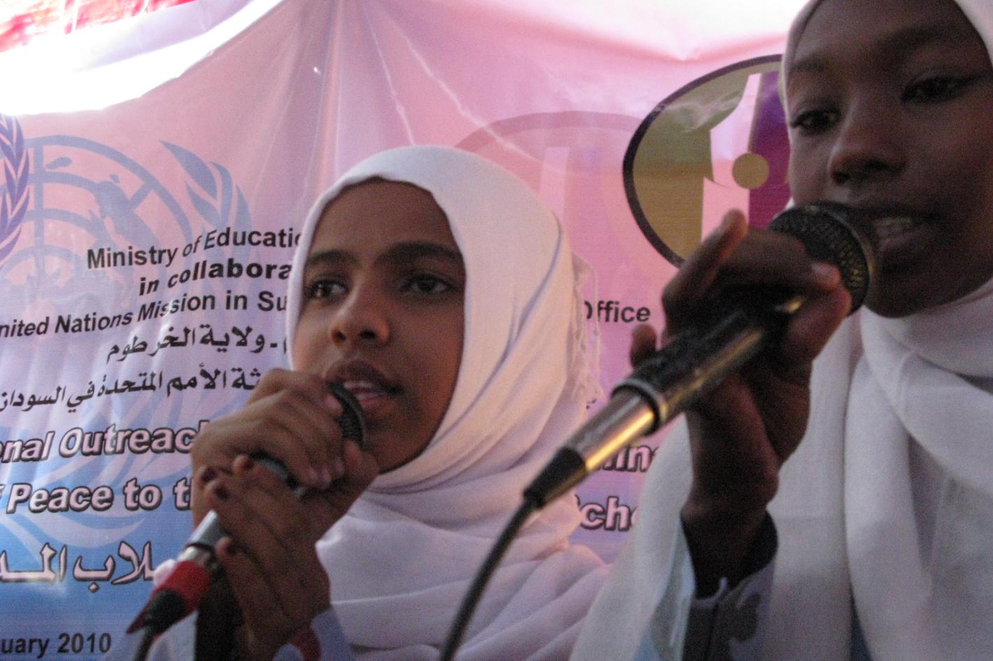 Talks, song and a video clip highlighted the role of UNMIS in Sudan as well as the meaning of peace at an all-girls school in north Khartoum on 24 January. "As you can see, I wear a uniform and a blue beret," Lt. Col. Ken…