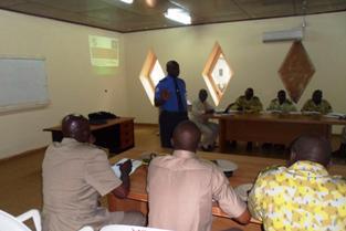 UN Mine Action Service (UNMAS) Director Agnes Marcaillou cutting a ribbon to inaugurate an armoury in Juba on 19 September. UNMAS, in partnership with the Mines Advisory Group, refurbished the armoury at the Central Equatoria…