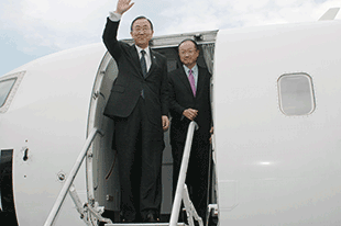 Kinshasa, 23 May 2013 – The United Nations Secretary-General, Ban Ki-moon arrived this Thursday morning in the Nord Kivu province from Kinshasa as part of a joint mission to the sub-region with the President of the World Bank…