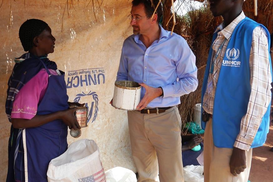 24 August 2012 - UNMISS Deputy Special Representative of the Secretary-General Toby Lanzer at food distribution site in Yida refugee camp, Unity State.