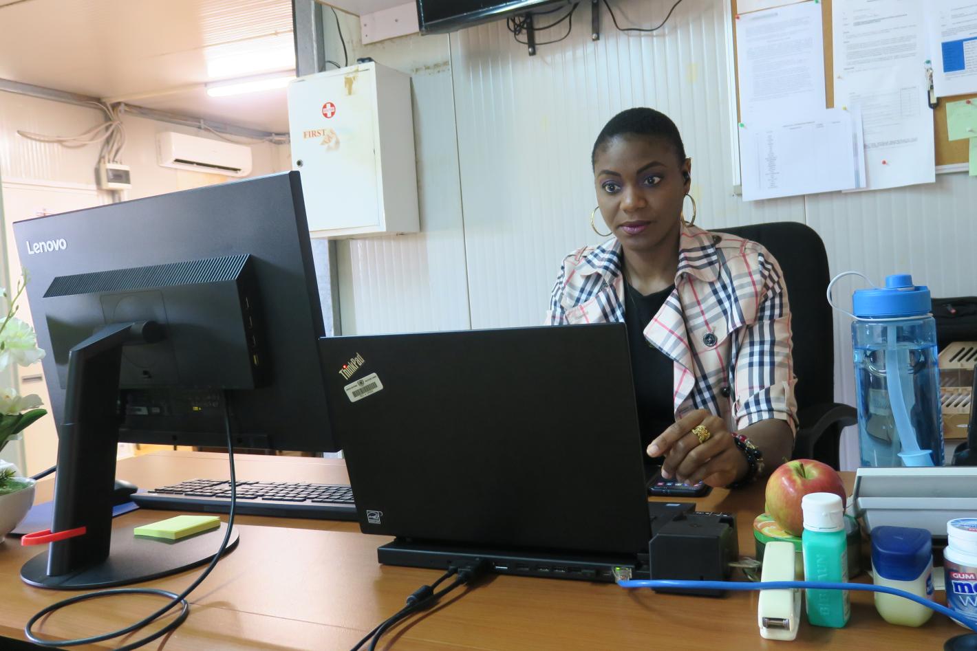 Diane Umuhoza uses her 12-year experience as a laboratory technician to ensure UNMISS peacekeepers are in peak physical condition to protect civilians and help build a durable peace. Photo by Zejin Yin/UNMISS WARRAP – Diane…
