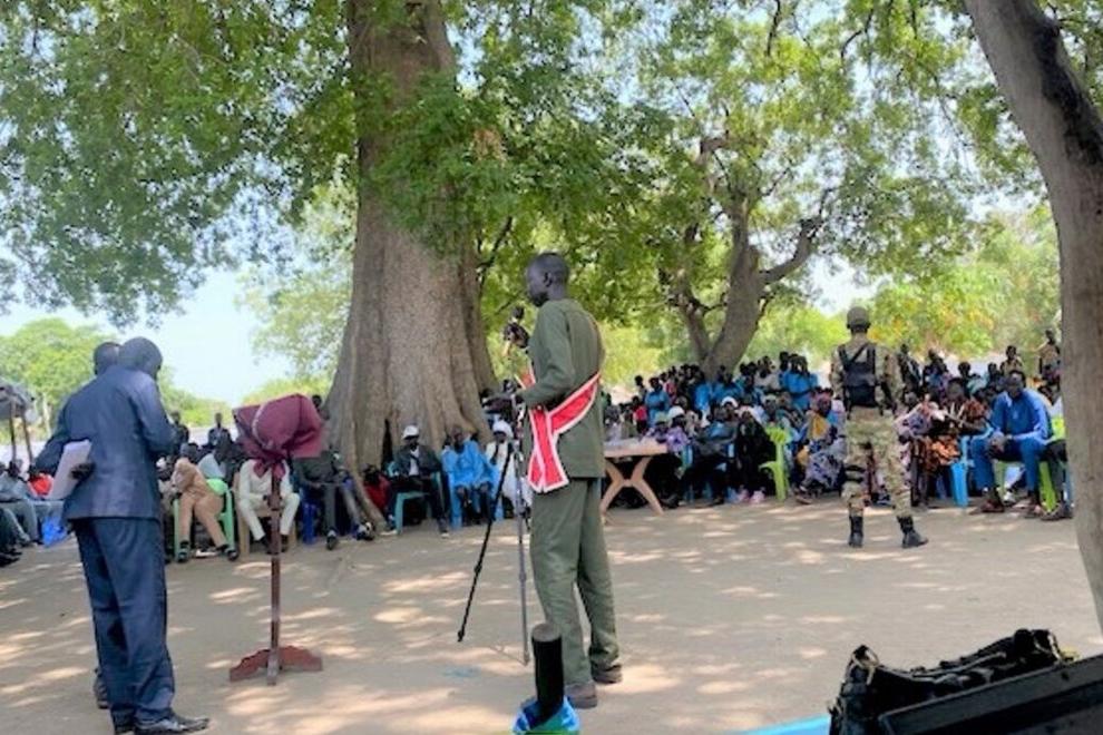 The Kozi and Mambe communities in Maridi County, inspired by a workshop conducted by UNMISS, have formed a new Protection Peace Committee, with its members intended to become local ambassadors of peace. Photo by Phillip Mbugo…